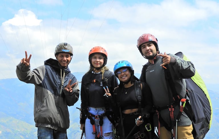 Somos un equipo apasionado por el parapente biplaza, para realizar tour de parapente en medellin, con años de experiencia compartiendo la emoción de volar con personas de todo el mundo. Nos dedicamos a ofrecer experiencias seguras y memorables, para que puedas disfrutar de la belleza del cielo desde una perspectiva única, en Medellin - Colombia